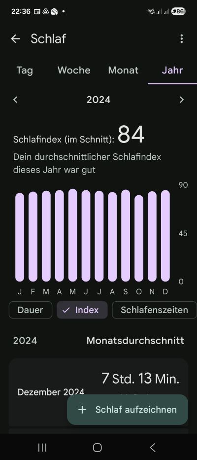 Mein Schlaf-Index: im Jahres-Durchschnitt um 1 Punkt verbessert 💪